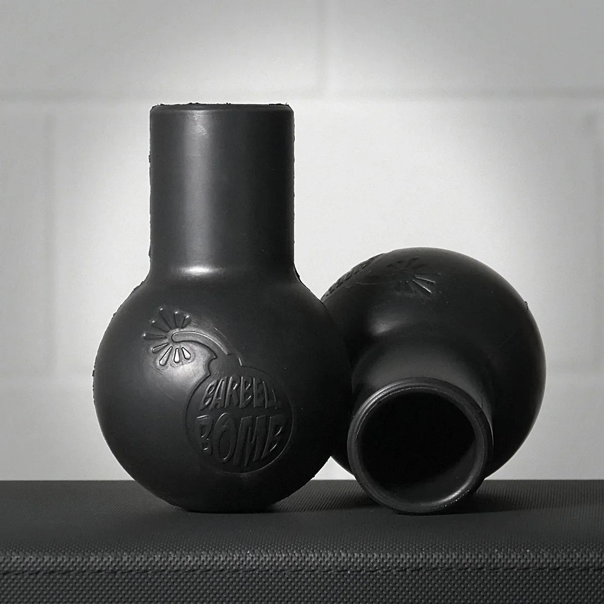 Dimensionally the Barbell Bomb is about 7" long and will take up about 5.5" of the barbell sleeve when installed. Additionally, the Barbell Bomb can be used as a handle for the opposite side of the barbell to provide a very comfortable grip for movements such as push presses and goblet squats.