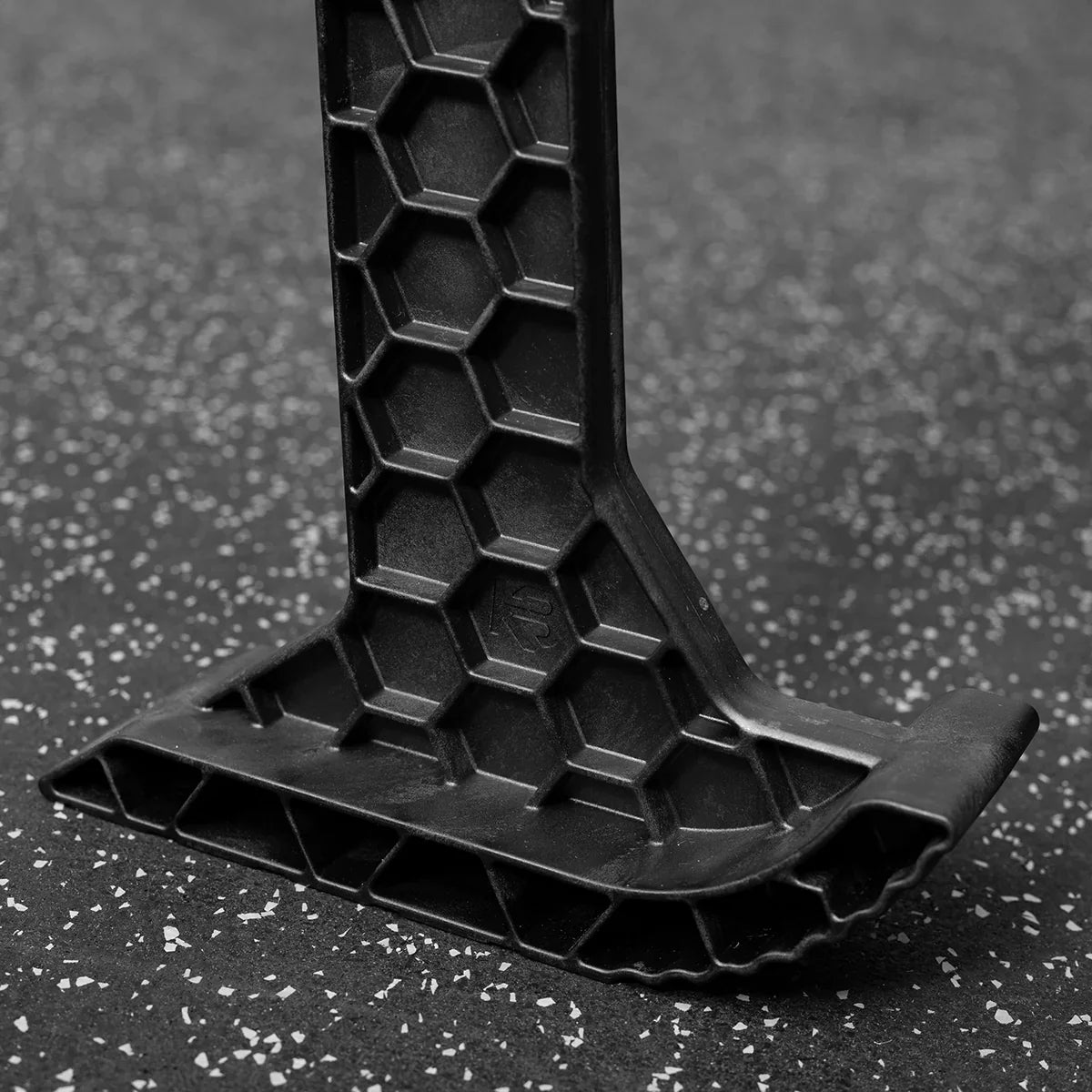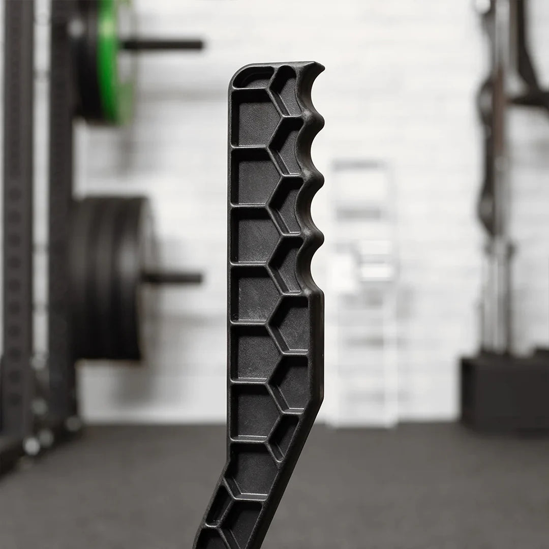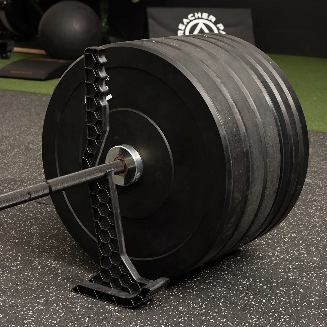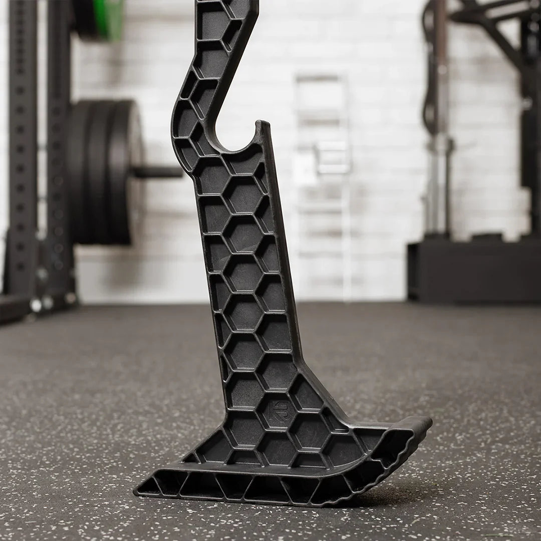 The Evo Jack has a small footprint and weighs under 1LB, making it perfect for packing in your gym bag or storing in your home gym. Though small, the Evo Jack is mighty, made of specialized molded composite material that can easily lift over 800LBS (400LBS each side) of the barbell.