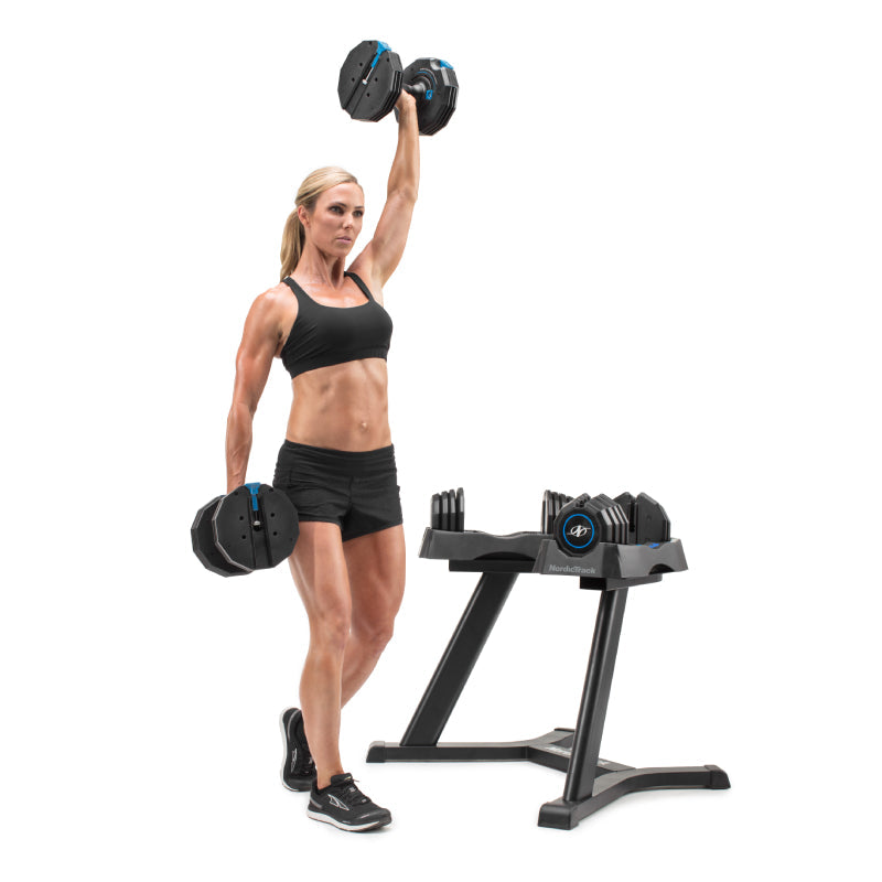 The Weider single adjustable dumbbell is your all-in-one workout solution, seamlessly guiding you from warm-up to cool-down. This single dumbbell effectively replaces five, optimizing your home storage space. With its user-friendly smooth selector system, you can effortlessly switch between 10, 20, 30, 40, and 50 pounds, enabling you to concentrate on your lifts while adjusting the weight between sets. The set comprises the adjustable dumbbell and a weight-labeled storage tray for your convenience.